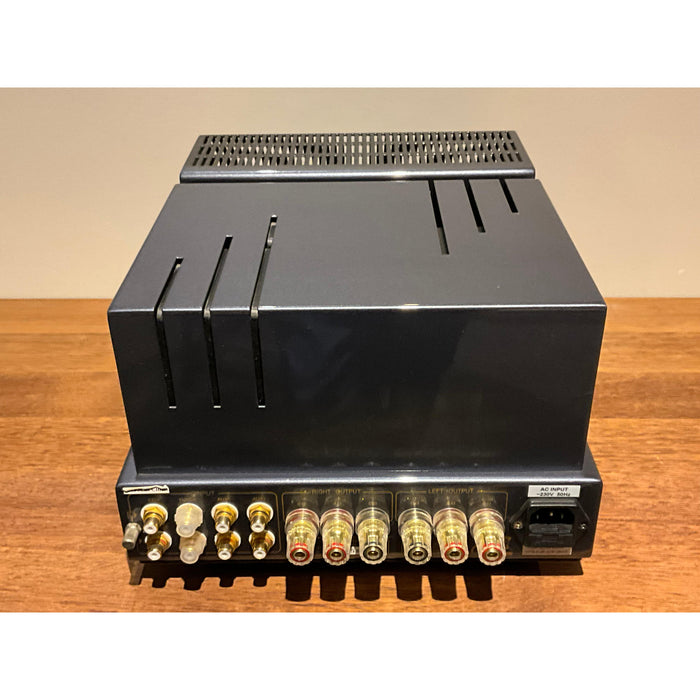 We sold this unit new to this customer so we know its history and it has been lovingly cared for and enjoyed. This model can also take an upgrade to KT88 tubes as it comes with the tube selector on the side for easy adjustment.